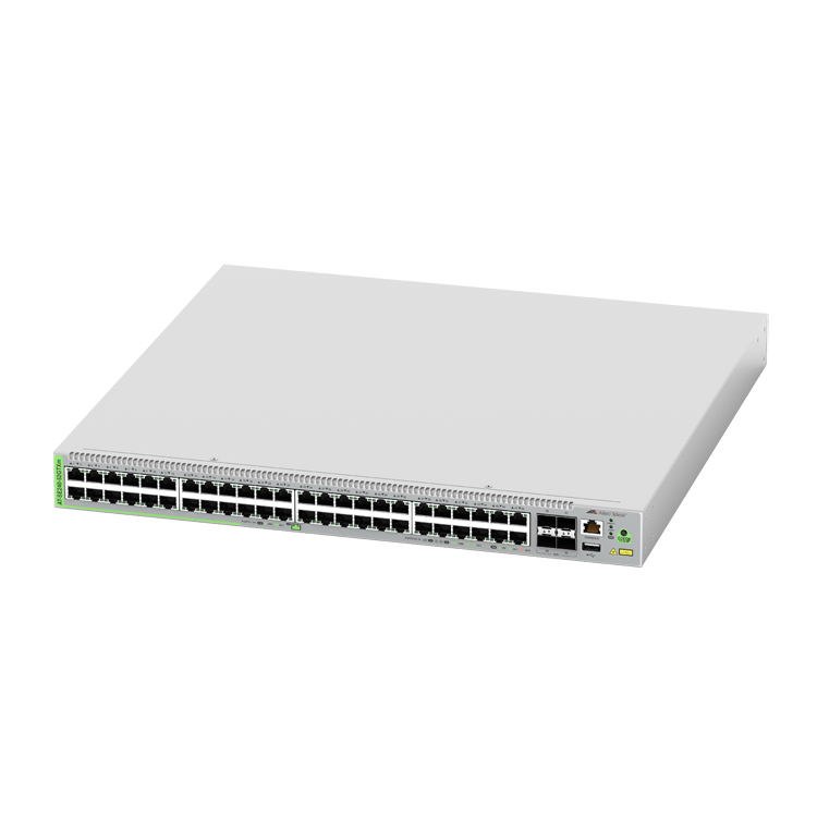 AT-SE240-10GTXm は、マルチギガビット(2.5G/5G)のインターフェースを 8ポート装備した、Non-PoEモデルのレイヤー2plusマルチギガビット・インテリジェント・スイッチです。すべてのポートで2.5G/5GBASE-Tをサポートしており、Cat5eケーブルのままで高速通信を低コストで実現します。SFP/SFP+スロットを2つ備えており、上位のディストリビューション、コア・スイッチに対して10ギガでの高速・大容量接続を提供します。