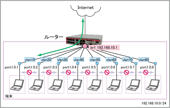 Note保護ポートの対象はL2通信だけです。ブリッジインターフェース(brX)を経由したL3通信の制御は別途ファイアウォールなどで行う必要があります。