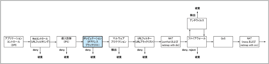 NoteIPレピュテーション(IPアドレスブラックリスト)機能の対象はIPv4パケットだけです。IPv6には対応していません。