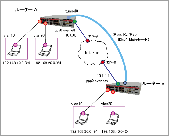 | WAN側(ppp0)IPアドレス | 10.0.0.1/32 | 10.1.1.1/32 |