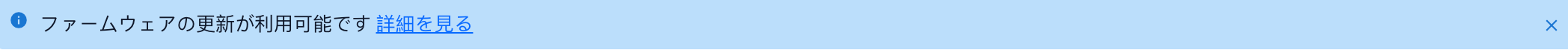 Noteファームウェアの更新があるときは画面上部に次のような通知が表示されます。通知内の「詳細を見る」をクリックすると「更新」画面に移動することができます。