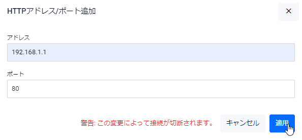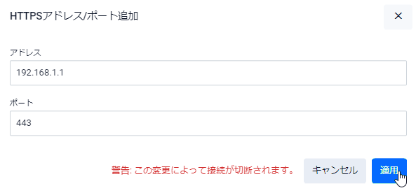 Note待ち受けアドレス/ポートの追加や削除を行うとWeb GUIの接続がいったん切断されます。
