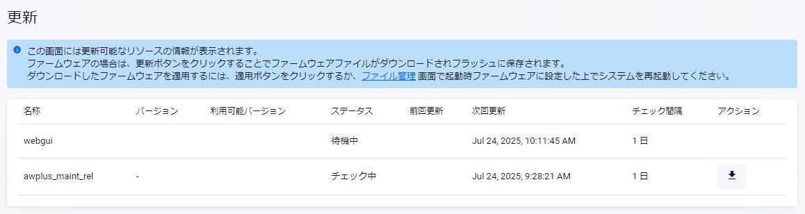 | ファームウェアファイル | 現在使用中のファームウェアイメージファイルが表示されます |