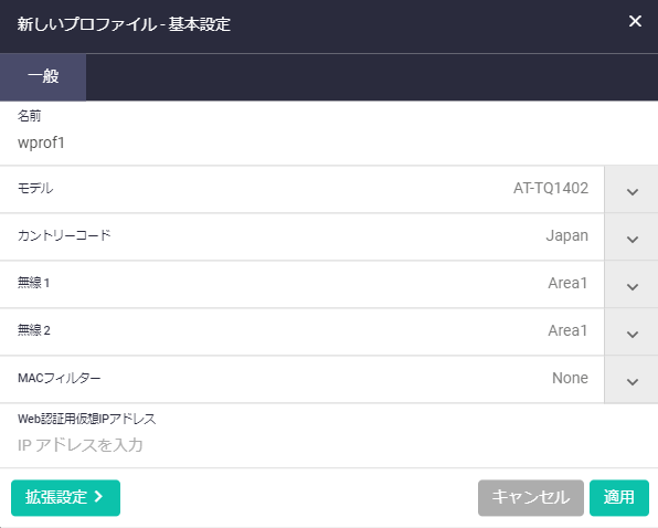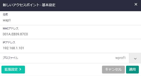 それぞれ以下のように設定し、「適用」をクリックして各APを追加してください。