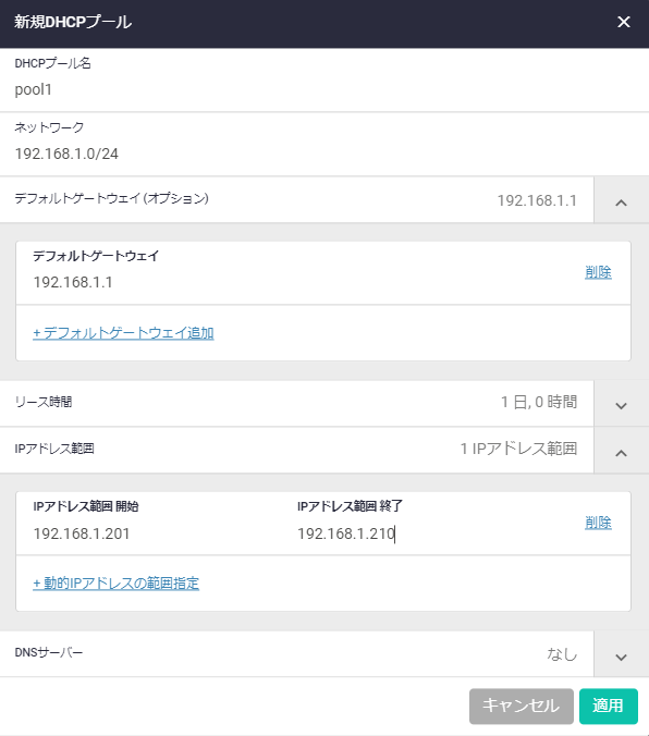 設定が終わったら、「ネットワークサービス」>「DHCPサーバー」画面右上のスイッチをクリックして、DHCPサーバーを有効化してください。