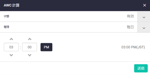 初期設定ではAWCの計算開始は毎日 15:00、計算結果適用は毎日 03:00 に設定されています。