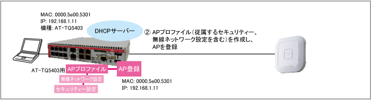| AP個別設定(AP登録) | ap | ・APのMAC/IPアドレスとAPプロファイルを関連付け、管理対象として登録 |