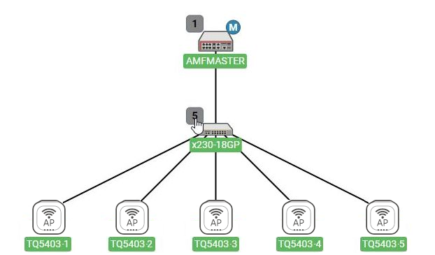 AMFゲストノードとしても認識されている管理下のAPは、実際の接続先であるAMFノードにつながった形で表示されます。