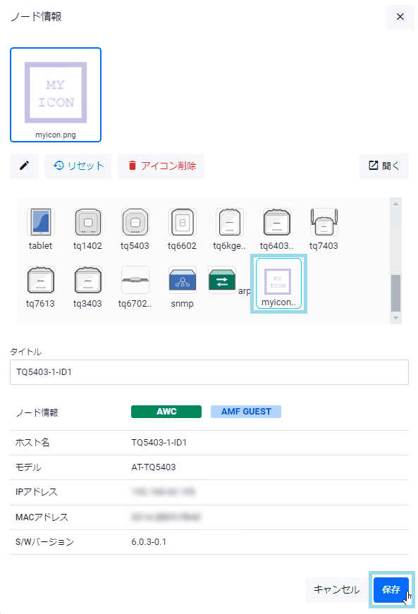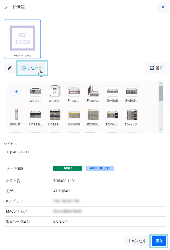 無線LANコントローラーの管理下にある場合はAMFゲストノードかどうかにかかわらず「AWC」と表示され、無線LANコントローラーの管理下にないAMFゲストノードの場合は「Guest」と表示されます。