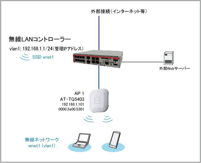 | 1 | 192.168.1.0/24 | 無線LANコントローラーと管理下APの通信に使用する管理用VLAN |