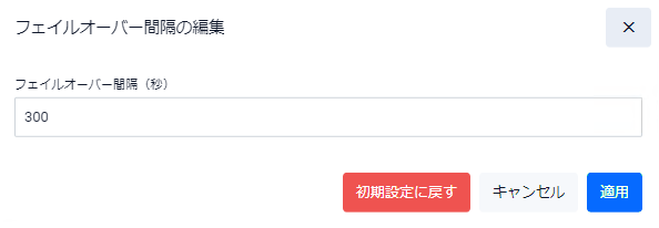 | 編集ボタン | フェイルオーバー間隔の編集ダイアログが表示されます |