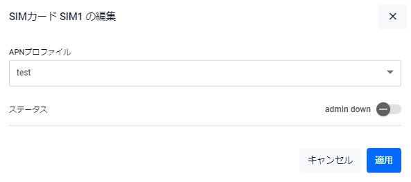 | ステータス | SIMスロットの有効(Admin Up)・無効(Admin Down)を選択してください |
