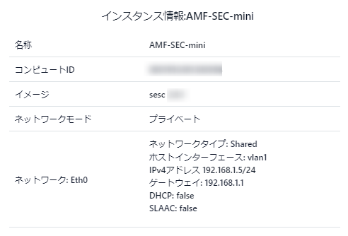 | ネットワークタイプ | インスタンスのネットワークインターフェース種別が表示されます。Sharedのみサポートです |