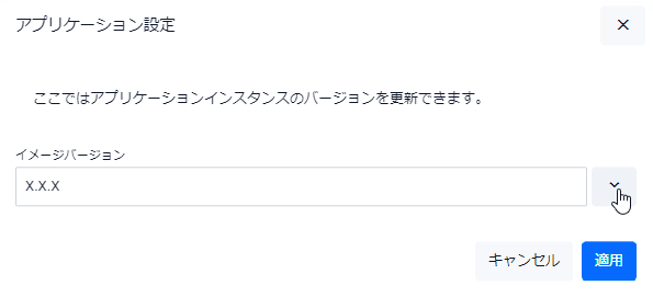 | イメージ | アプリケーションイメージのバージョン情報が表示されます |