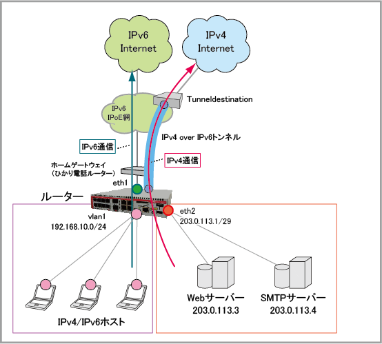 | IPv4グローバルアドレス | 203.0.113.1/29 |
