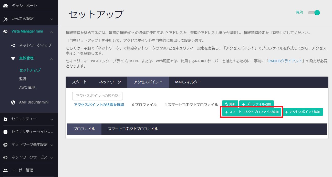 Note本設定例はAT-AR4050S、AT-AR4050S-5Gでのみサポートです。AT-AR3050Sでは使用できません(スマートコネクトの設定をサポートしていないため)。