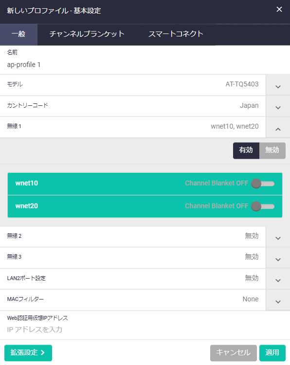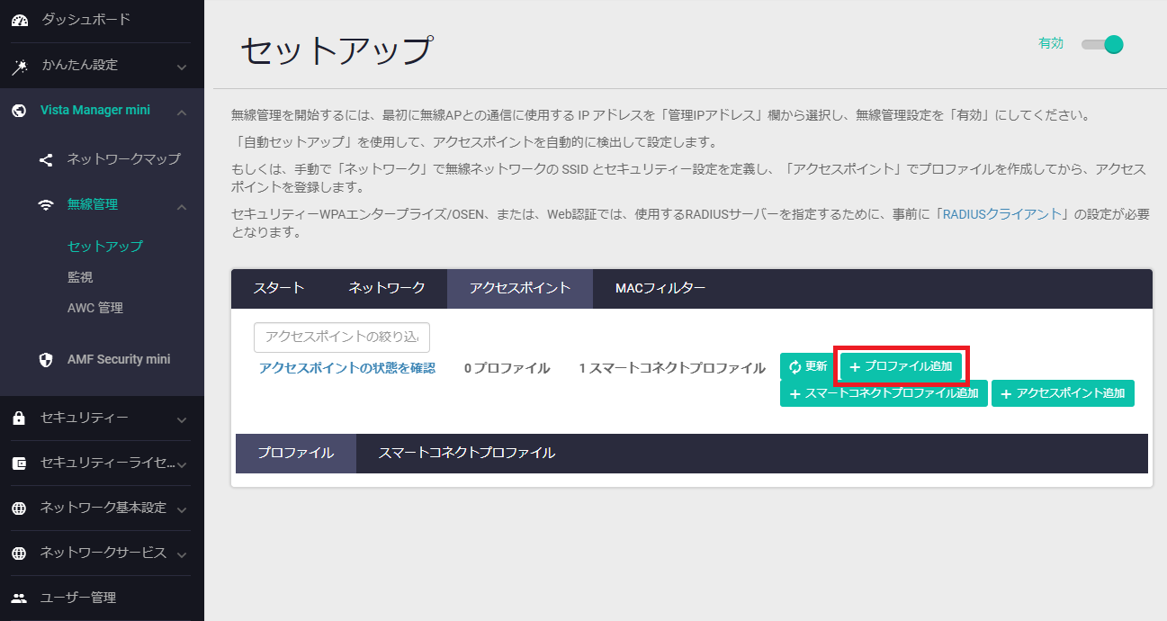 | 無線1 | 有効 |
