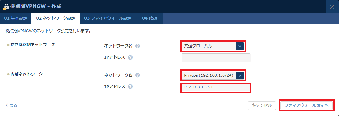 | 拠点間VPNゲートウェイ(NIFCLOUD) | 172.17.0.1(実際のIPアドレス確認方法) |