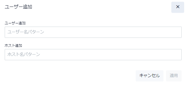 | ユーザー追加 | ユーザー名パターンを入力します。1~256文字。半角英数字とアスタリスク(*)、ハイフン(-)、アンダースコア(_)、ピリオド(.)のみ使用可能です |