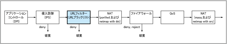 NoteHTTPSの通信では暗号化されたTLSセッション上でHTTPリクエストが送信されるため、アクセス先URLそのものを検査することはできません。ただし通常、TLSセッション開始時のClientHelloメッセージには接続先サーバーのドメイン名がSNIとして含まれるため、HTTPS通信に対してはこのドメイン名の情報を利用して処理を行います。