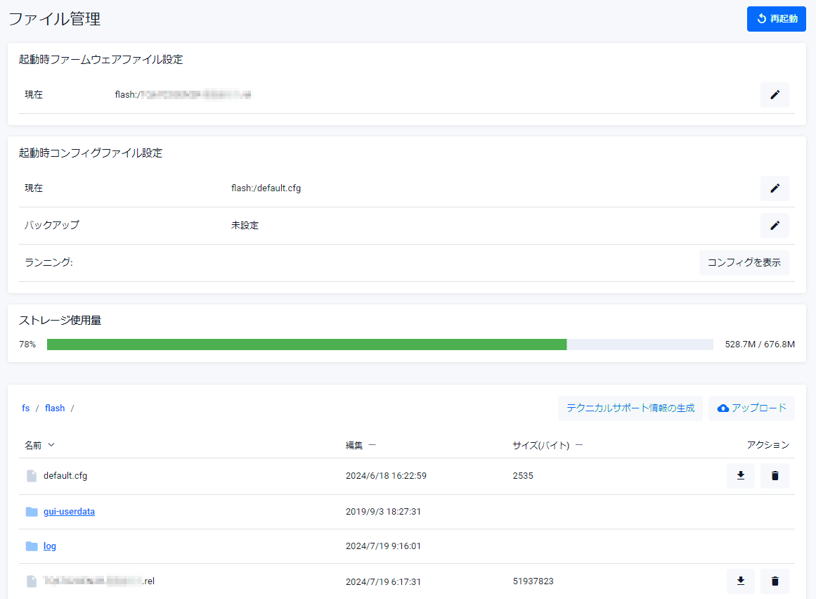 Noteファームウェアの更新がある場合は、フラッシュメモリーへのダウンロードと適用(起動ファームウェアとしての設定およびシステム再起動)を個別に実行可能です。GUIファイルはサポート対象外です。