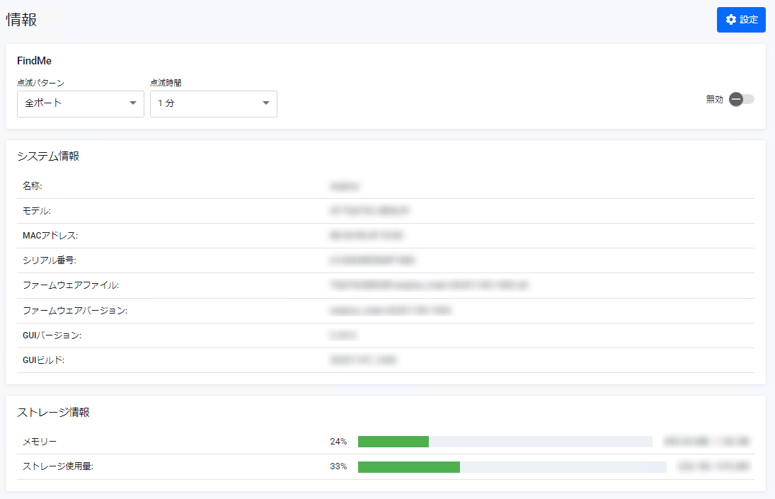 | ファームウェアバージョン | 現在使用中のファームウェアバージョンが表示されます |