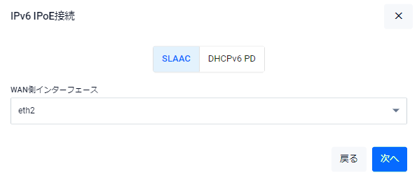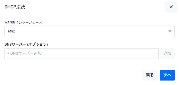 Note「かんたん接続」でWANインターフェースとして選択できるのはeth2のみです。eth1を使用する場合はコマンドから設定を行う必要があります。
