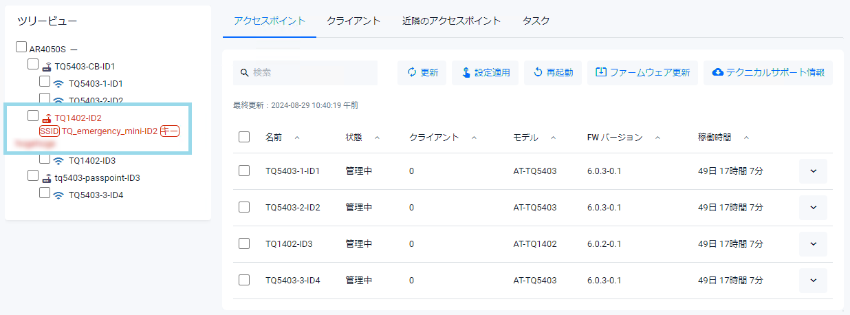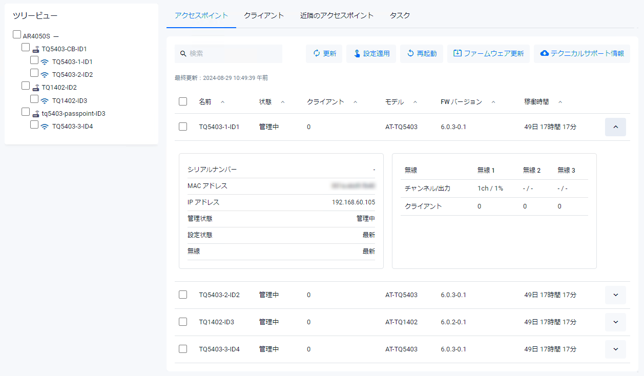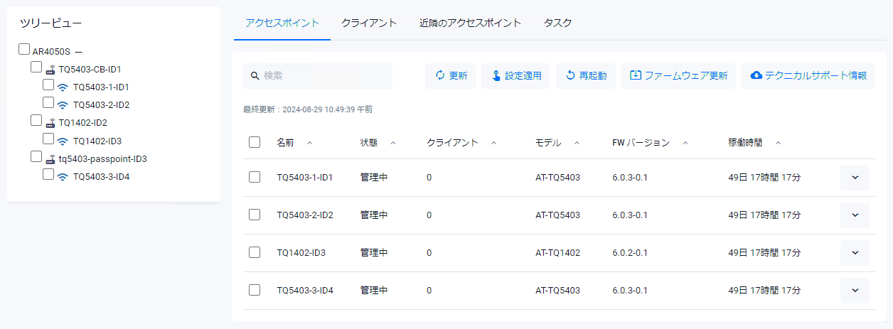 Noteアクセスポイントのファームウェア更新は1台ずつ行ってください。状態が更新中になるまで次のアクセスポイントのファームウェア更新は行わないでください。