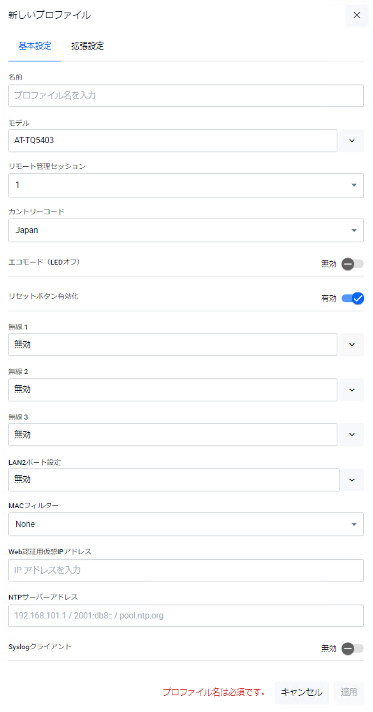| プロファイル | 対象管理下APに適用するAP共通設定(APプロファイル)を指定します |