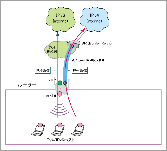 | WAN側(tunnel0)IPv4アドレス | MAPルール配信サーバーから取得した情報にもとづいて自動設定 |