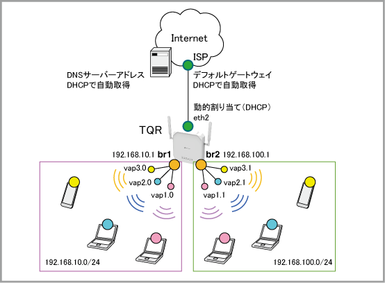 | LAN側(br2)IPアドレス | 192.168.100.1/24 |
