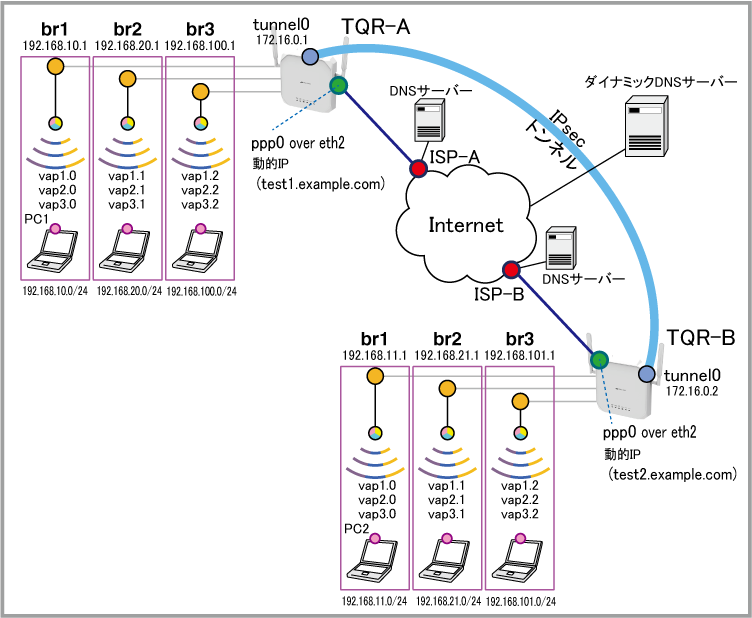 NoteTQR-A、Bが使用するホスト名やダイナミックDNSサーバーにアクセスするためのアカウントは、あらかじめ取得してあるものとします。