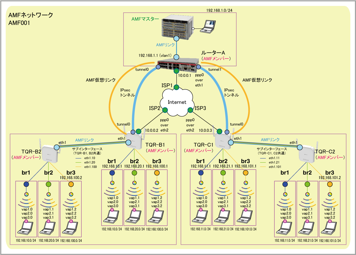 | AMF仮想リンク1 | 172.16.0.1(ルーターA:AMFメンバー) - 172.16.0.2(TQR-B:AMFメンバー) | ||||