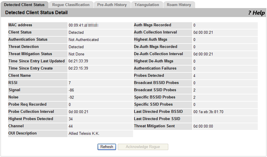 | Authentication Status | 認証済みであるかどうかを表示します。(Client StatusがRogueであってもまだ認証済み状態ということもありえます。) |