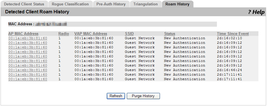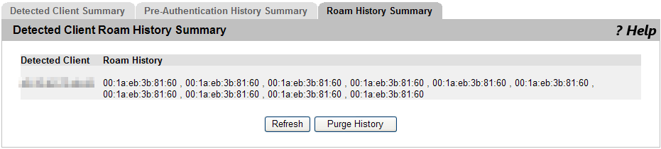 | Roam History Summary(検出クライアントのローミング履歴概要) |