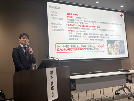 また、11月14日(金)の共催セミナーでは、大津赤十字病院 事務部 医療情報課 課長 橋本 智広氏にご登壇いただき、医療機関におけるIT-BCPの実践的なアプローチについてご講演いただきました。弊社からは、仮想化基盤の導入がもたらすメリットや具体的な活用方法について、大津赤十字病院様での導入をご支援させていただいた事例の内容を踏まえてお伝えいたしました。