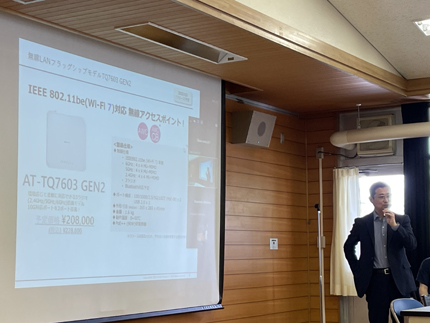 本研究会のデモ展示コーナーでは、教育現場に必要な次世代ネットワーク環境の実現に向けた有線LANの10G化・マルチギガ対応による大容量通信の実現や、無線LAN(Wi-Fi 7対応)の高速化、安全性と利便性を両立したネットワーク統合など、教育現場のデジタル化を支援するソリューションをご紹介のほか、複数のキャンパスを有する大学向けには、キャンパス情報ネットワーク構築のポイントを解説いたしました。