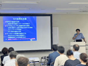 さらに、会期1日目に開催する出展者セミナーでは、福井大学 医学部附属病院 山下准教授にご登壇いただき、院内の働き方改革に向けてのICT活用について、実際の現場での運用や活用事例をご紹介いただきました。