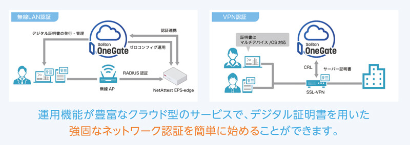 ※Soliton OneGateと連携し、電子証明書の発行・管理をクラウドで行います。