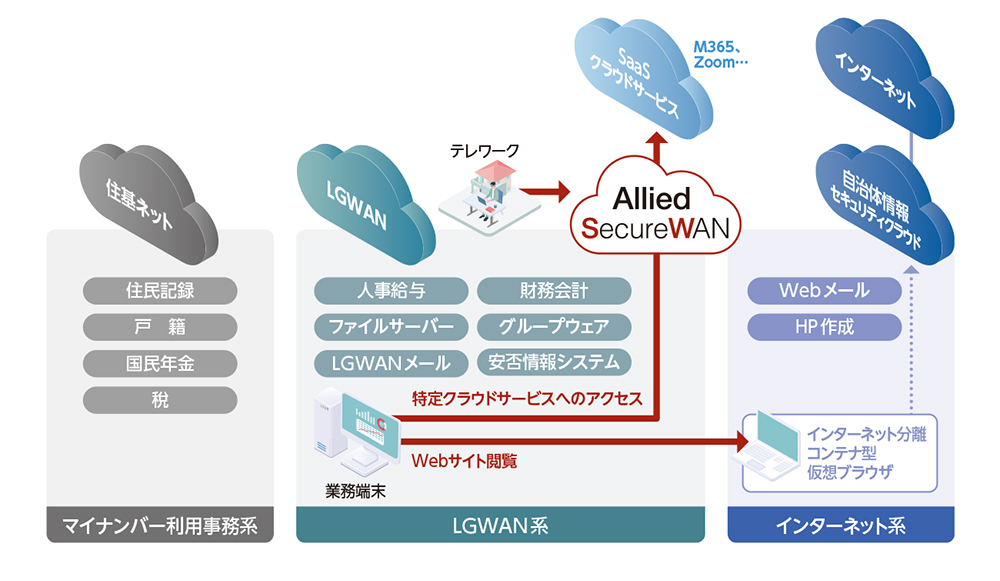 - LGWAN接続系から特定のクラウドにローカルブレイクアウト接続するα´モデルを実現!