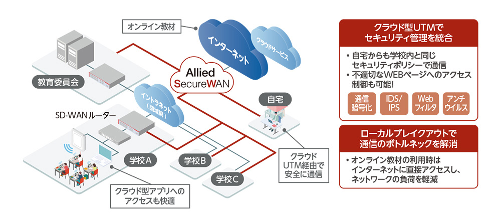 - オンライン教材などの特定クラウドアプリはローカルブレイクアウトさせて回線のボトルネックを解消!