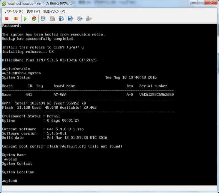4. 仮想マシン起動後、コンソールにアクセスして完了です。