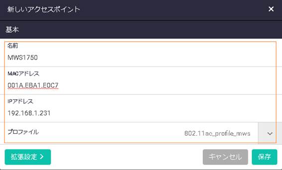 | 2 | AT-MWS1750AP | AT-MWS APシリーズ デュアルバンド 802.11ac対応 | 192.168.1.231(1) | 001a.eba1:e0c7 |