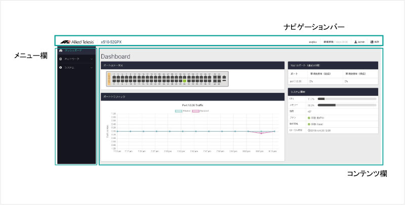 Web GUIの画面、メニュー構成、機能などは、製品機種やファームウェア、GUIファイルのバージョンによって異なる可能性があります。