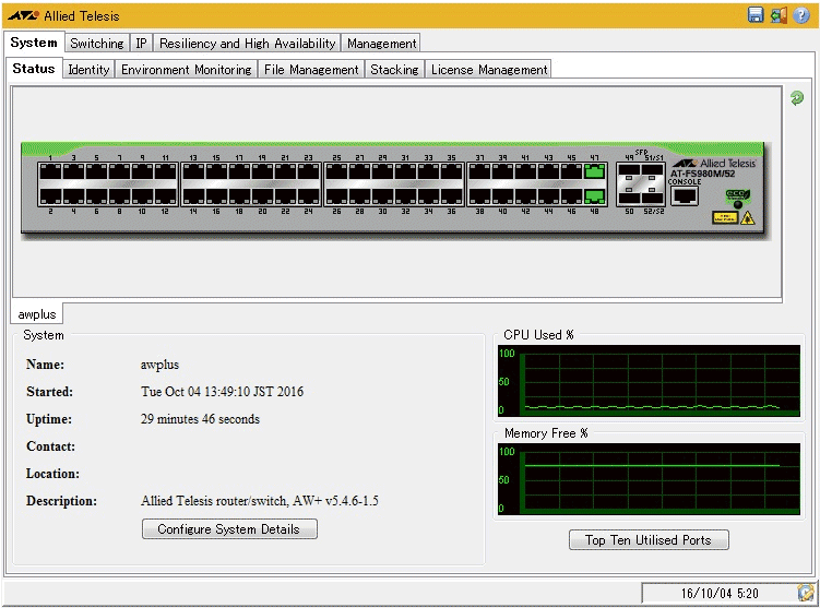 | Stacking Management / Stack Status | スタックメンバーの情報を表示(スタックメンバーが接続されていないと、Warningが表示される) |