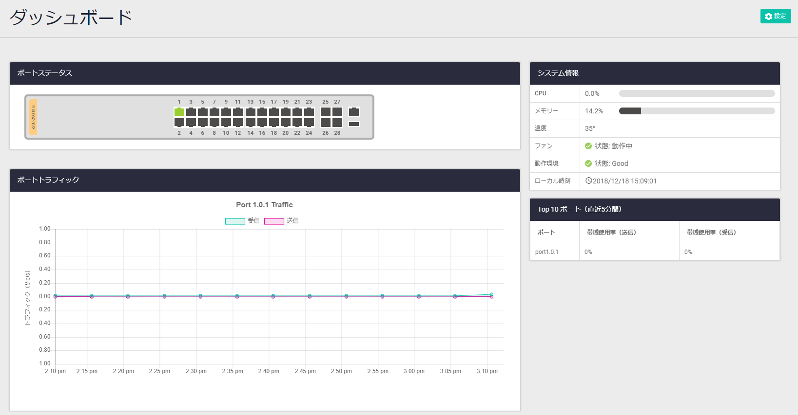 本製品に対する設定は通常 CLI(Command Line Interface)で行いますが、WebブラウザーからGUI(Graphical User Interface)にアクセスして、本製品の動作状態をモニタリングしたり、基本的な機能の設定を行ったりすることも可能です(CLI上で可能な設定がすべてできるわけではありません)。