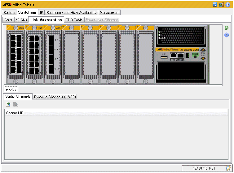 | Dynamic Channels | (LACP) 手動設定のトランクグループ(チャンネルグループ)番号が表示される |