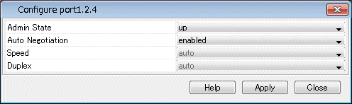| Speed | 通信速度(10 Mbps、100 Mbps、1000 Mbps、1 Gbps、10 Gbps、40 Gbpsまたはauto)をドロップダウンリストから選択 |