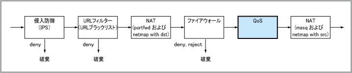 awplus(config-tc)# policy MYQOS priority ↓