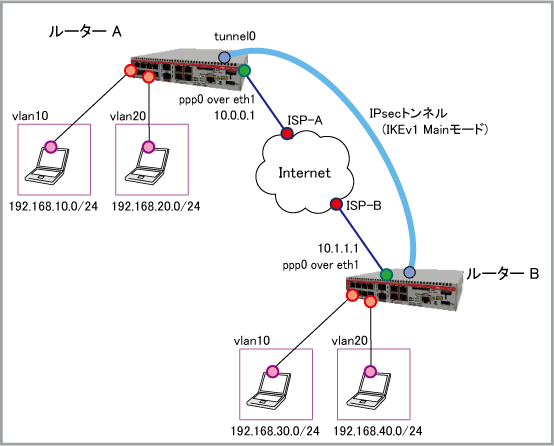 | WAN側(ppp0)IPアドレス | 10.0.0.1/32 | 10.1.1.1/32 |